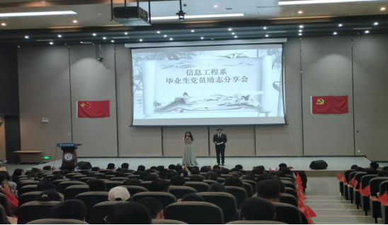 又一年大四毕业生党员即将离开母校的毕业季。为了加强在校党员学生与毕业生党员交流与学习,进一步促进支部党员成长,加强支部的凝聚力,2022年6月13日晚上19:00,信息工程系党总支在图书馆报告厅举办了以“强国复兴敢担当·踔厉奋发新征程”为主题的毕业生党员励志分享会,参与此次活动的有信息工程系全体党员师生、第十五期发展对象、第36期积极分子以及各系党总支等。