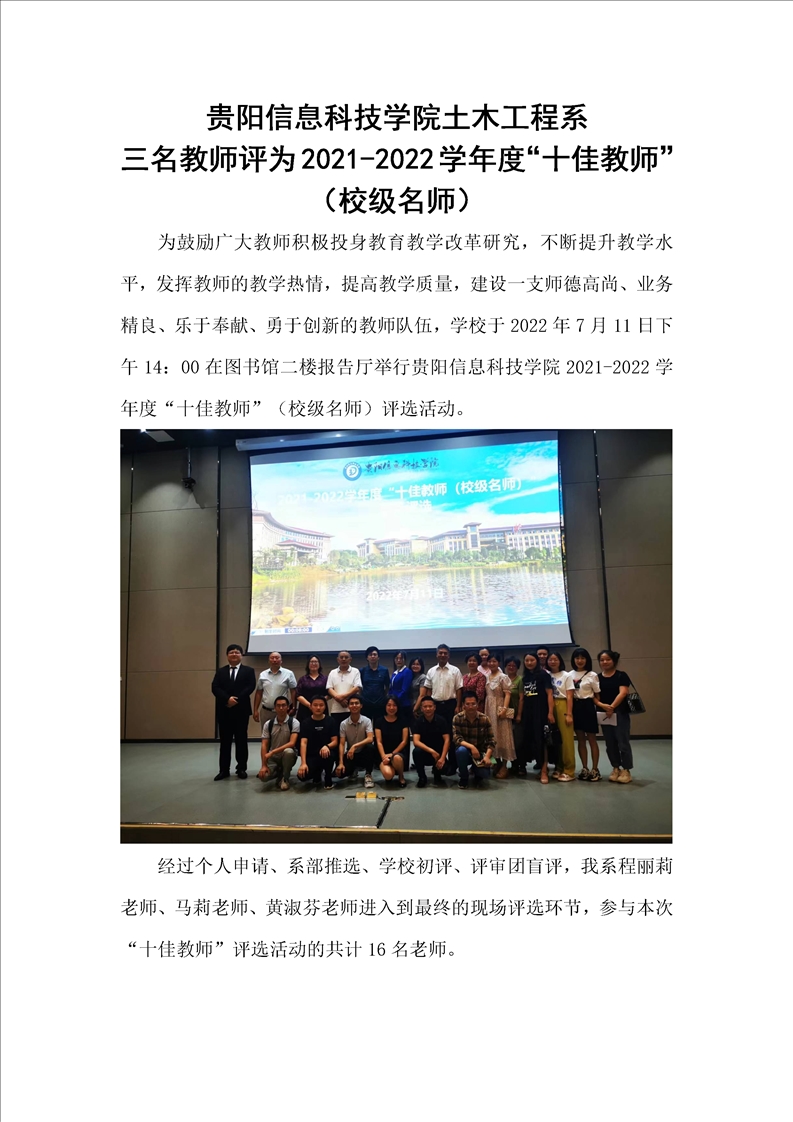 Beat365唯一官方网站土木工程系 三名教师评为2021-2022学年度“十佳教师”(校级名师)
