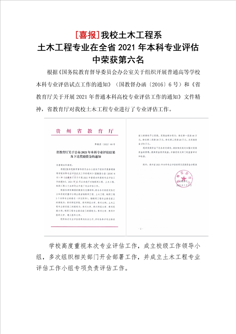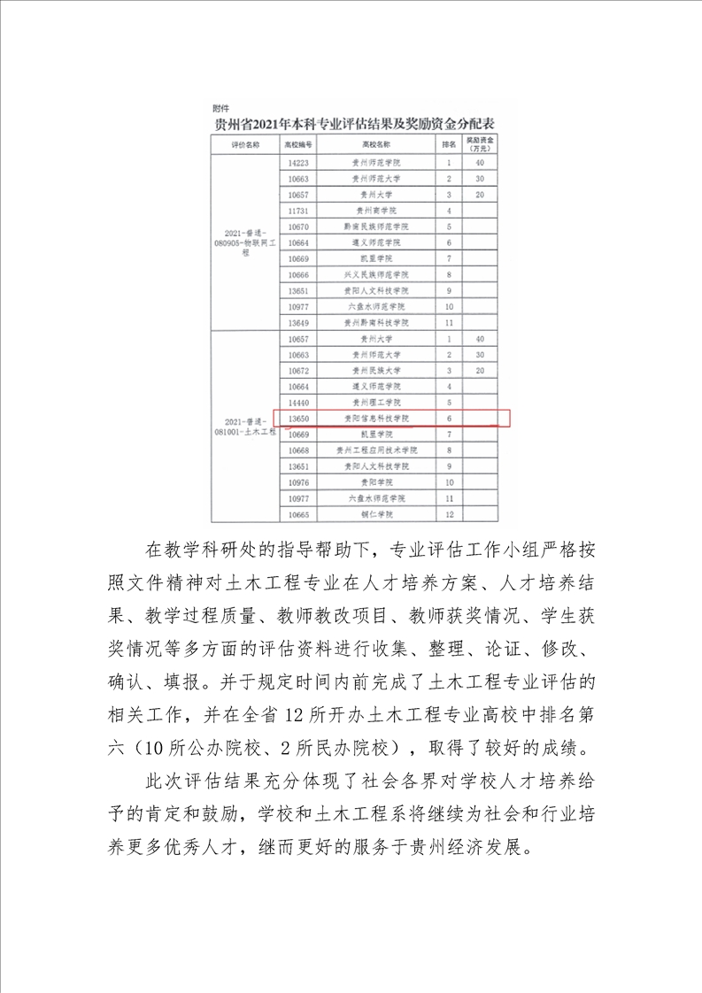 [喜报]Beat365土木工程系 土木工程专业在全省2021年本科专业评估中荣获第六名