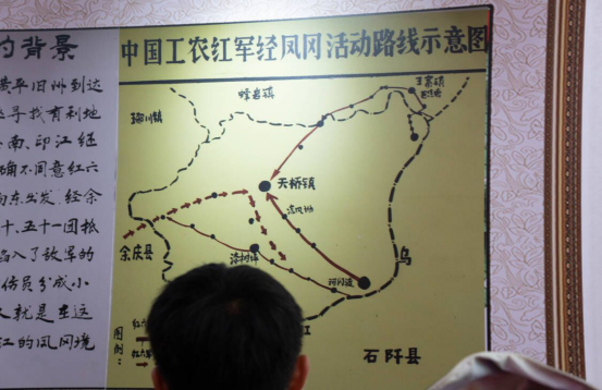 图为志愿者参观中国工农红军途径遵义市凤冈县天桥镇时的活动路线示意图