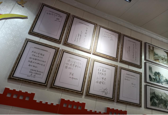图为志愿者参观天桥镇红军小学的红色基因文化墙