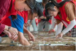 萤火相伴,爱心助农。我系三下乡实践队开展了扶农助农社会实践活动,帮助当地村民、老人采摘蚕茧。