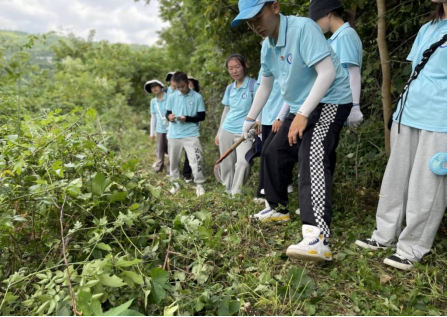 经过一个早上的努力,原本荆棘满布的道路焕然一新,富有生机,连续五小时的高温砍伐工作让每一位队员都深有感触。虽大寨村山路崎岖,连绵起伏;但队员们信念坚定,不畏险阻!一次服务,助力的是大寨村的文化旅游发展,温暖的是每一位留守儿童的内心!