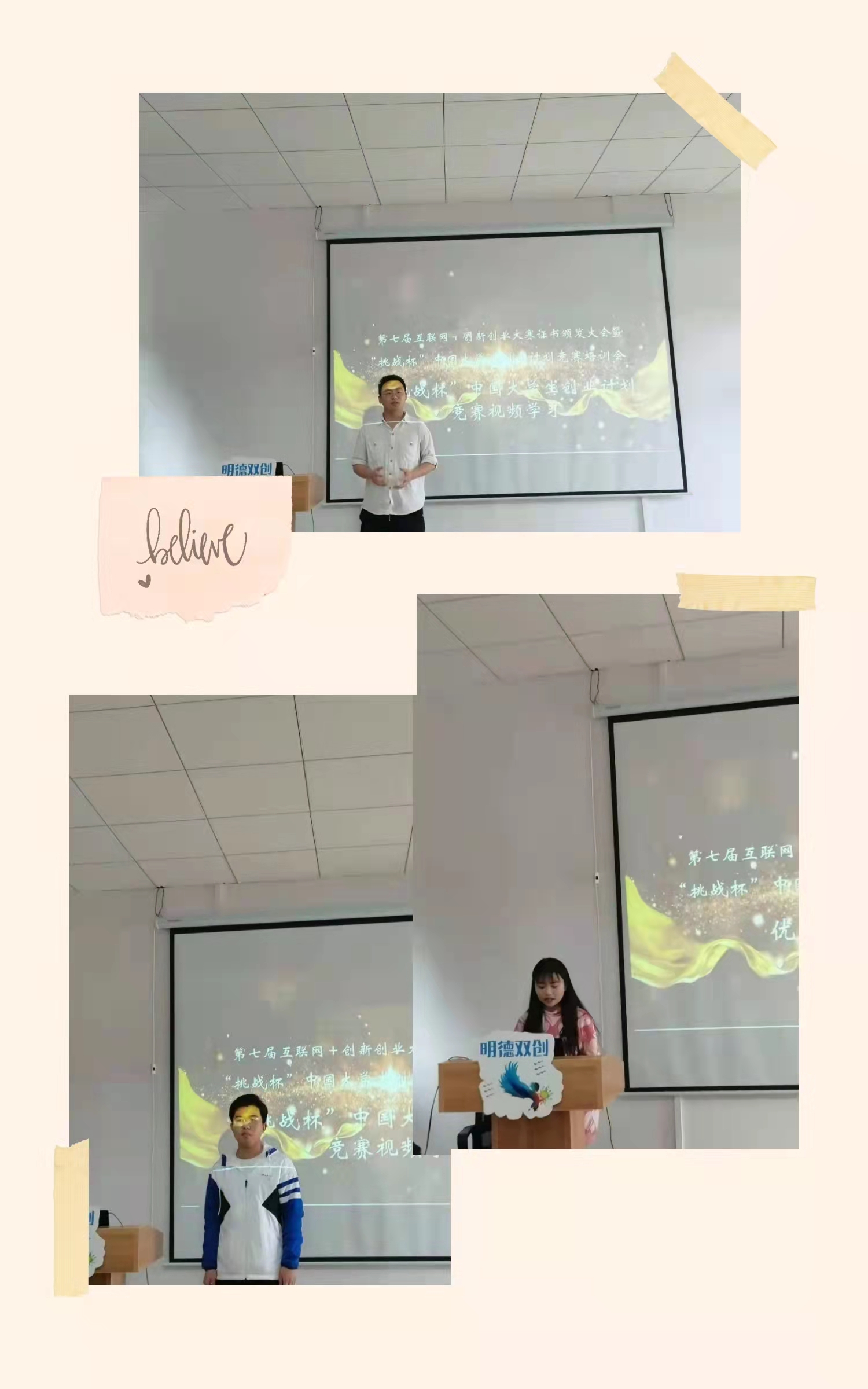为“金项目”、“参金赛”及“拿金奖”重点方向攻略。2022年3月18日中午,由学院双创中心组织第七届互联网+创新创业大赛证书颁发暨“挑战杯”中国大学生创业计划竞赛培训会在创新楼609(演播厅)举行。参会人员由杨波副校长、双创中心主任夏梦、经管系副主任唐嘉、经管系办主任甘曼蓉、健康管理系主任杨宏、各系双创负责老师、各系部优秀项目工作室指导老师及学生代表,由双创中心副主任王小军主持。