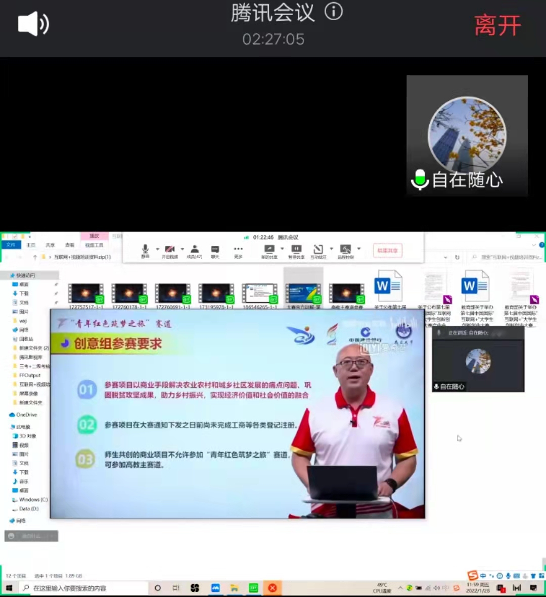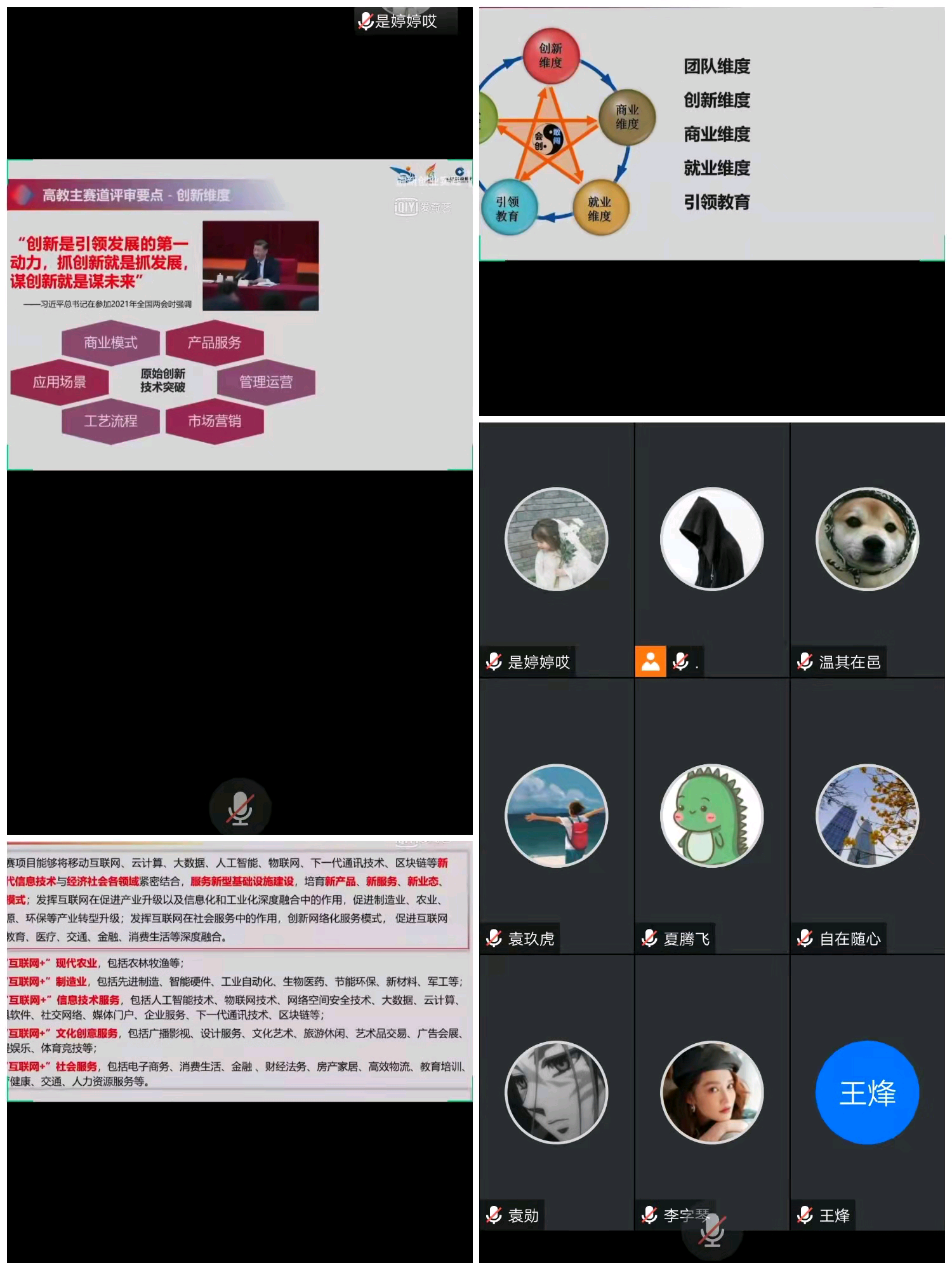 首期于2022年1月21日上午通过腾讯会议平台开展,重点学习了中国国际互联网+大学生创新创业大赛高教主赛道贵州省、云南省国赛金奖项目的路演视频及专家点评,同时各系优秀项目进行互动交流。