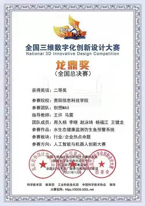 12月12日,第14届全国三维数字化创新设计大赛(简称“全国3D大赛”)年度总决赛以线上汇报答辩形式落下帷幕。Beat365智能工程系《水生态健康监测仿生鱼预警系统》项目荣获全国总决赛二等奖(龙鼎奖),创下历史最好成绩,可喜可贺。