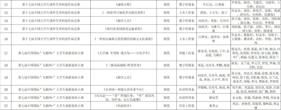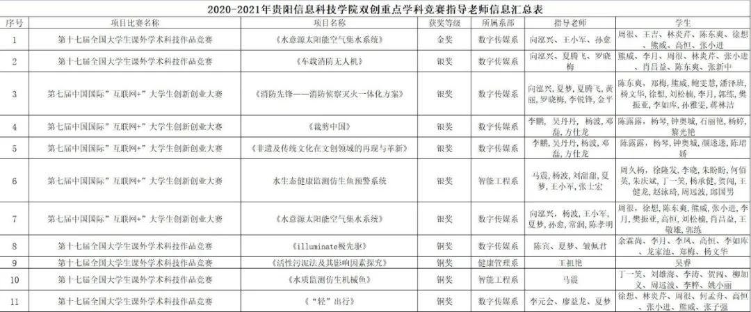 2021年度双创学科竞赛(重点项目)获奖名单详情