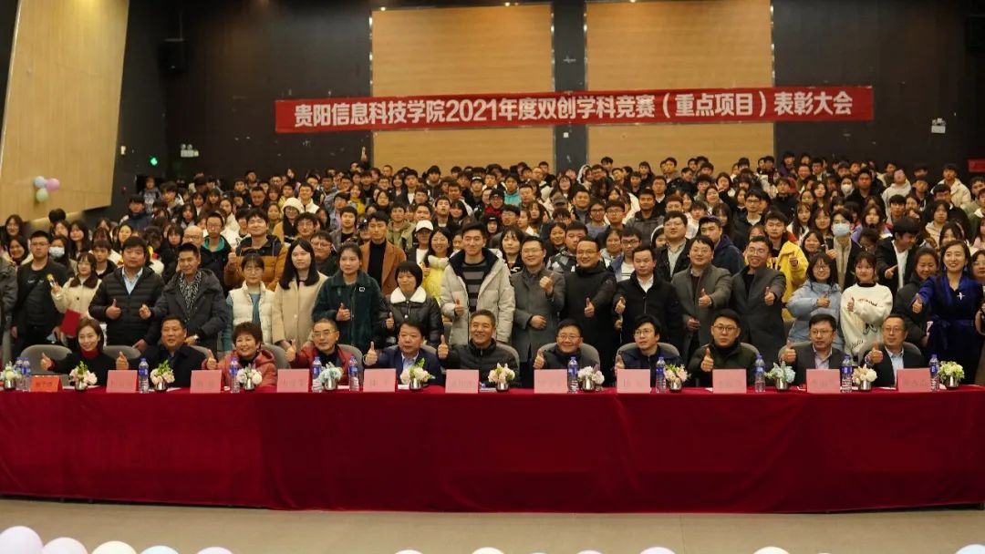 11月22日下午,由学校主办、双创中心承办、校团委及校创新创业协会协办的2021年度Beat365唯一官方网站双创学科竞赛(重点项目)表彰大会在学校图书馆二楼报告厅圆满举行。学校副董事长谢田凯、执行董事邱军、校长唐建荣、副校长谢静、副校长杨波、校长助理杨兵荣、校长助理李锐锋、各系部主任、团委、教学科研处、各系双创负责人、代表教师及学生参加,特邀嘉宾北京广慧金通教育集团总裁办主任谭永杰、中天金融集团股份有限公司战略管理中心负责人李炳军、成都常青物业集团董事长助理杨千琪共320余人出席此次大会,双创中心主任夏梦主持会议。