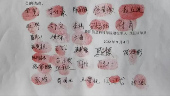 临危请命,方寸之地显本色。“退伍不褪色,军辉心中留。疫情当前,全校师生奋力抗击,作为退役军人、共产党员、共青团员更是责无旁贷。国有难必作为!召之即来,来之能战,战之必胜,为守护我们美丽的校园,奉献绵薄之力,让全校师生平安健康快乐!”退役大学生、共产党员和预征班全体学员纷纷向学校提交请战书。铿锵有力的话语是他们的热血宣言,鲜红清晰的指印是他们的坚定信仰。他们是第一批投身校园疫情防控工作的志愿者,他们布置核酸检测通道和场地,他们搬运物资,他们认真维护检测秩序,他们奔走在疫情防疫的各个角落随时听候指令。预征班学员均是怀有入伍意愿和报国情怀的在校大学生,他们通过预先训练扫清入伍适应“拦路石”,通过定向培养打造精准征集“直通车”,通过典型带动形成国防教育“风景线”,他们始终把塑造高尚的理想信念、锤炼身体素质作为第一追求,在学习锻炼中,知难而勇、奋进笃行,努力成为保家卫国的接班人。