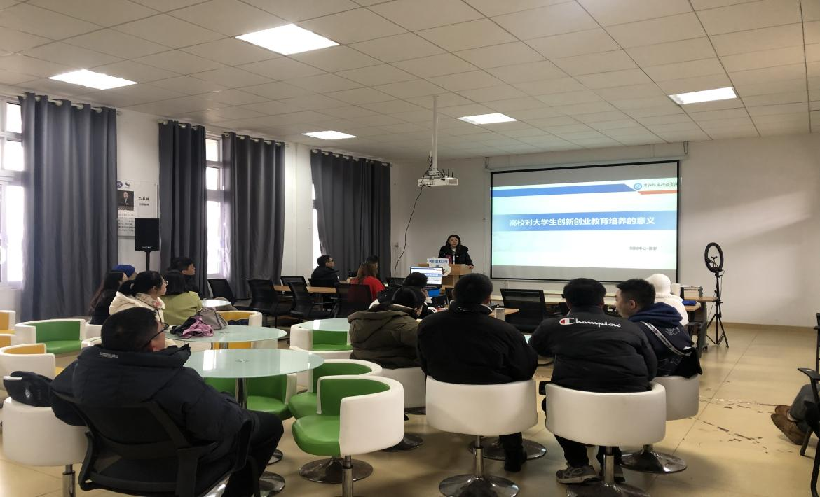 在培训中双创中心主任夏梦讲述了高校对大学生创新创业教育培养的意义,并表示双创教师在教学过程中应培养学生有进取、冒险以及企业家精神,在创新的过程中不断反省自己;打开创新的思维,获得创业的品质。