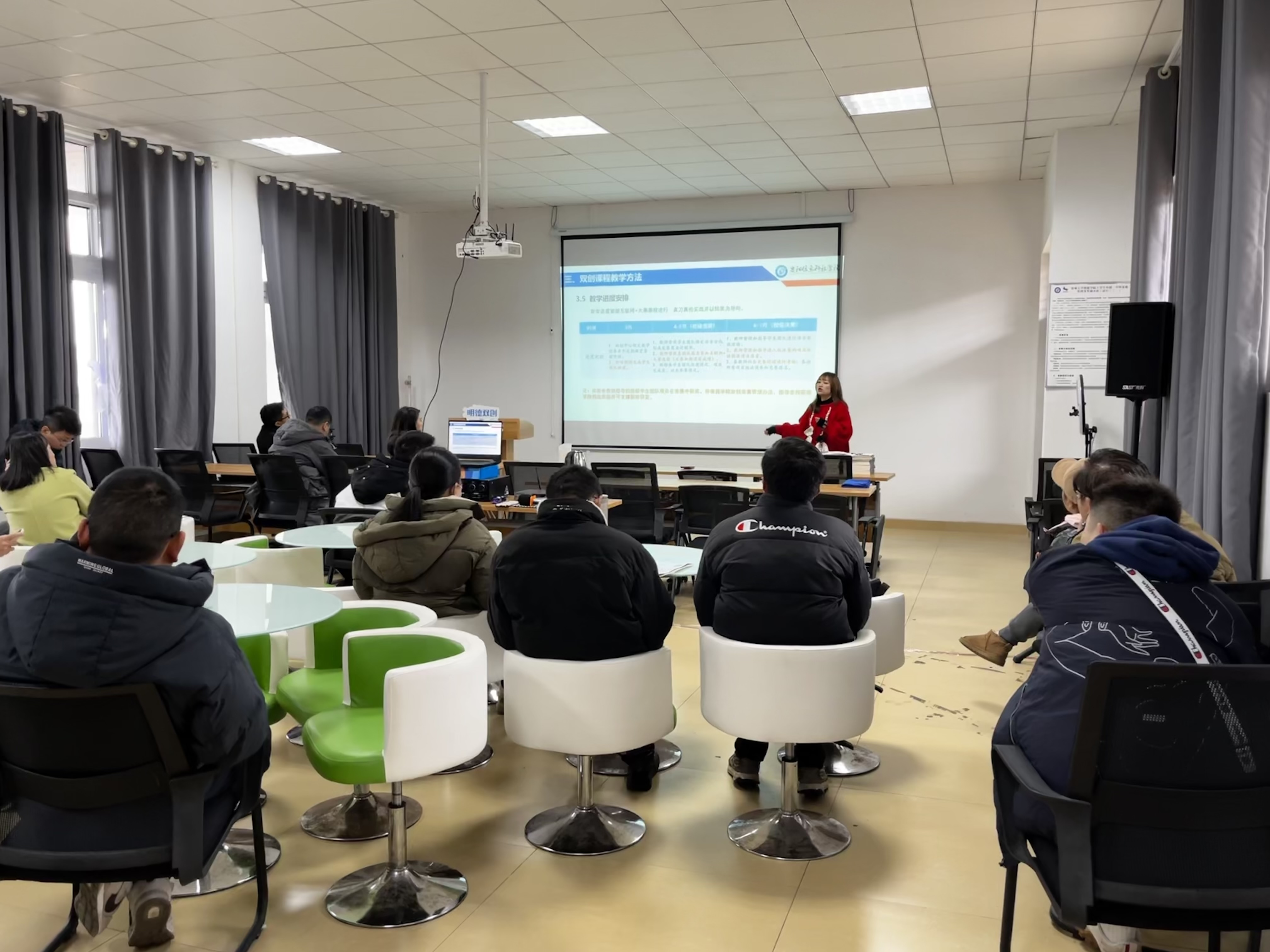 罗晓梅老师对双创课程进行了详细的介绍,并着重讲解了教学要求,助推学院整体双创教育工作水平的提升,以理论教学结合竞赛实践的方式培养学生的创新思维与创业精神。