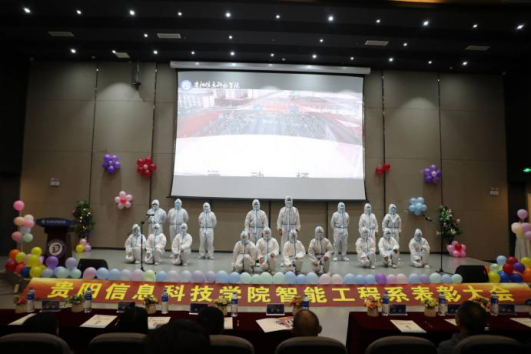 去时无悔,归来无恙。为表彰先进、树立榜样,进一步弘扬伟大抗疫精神,凝聚团结奋进力量,巩固拓展疫情防控阶段成果,4月3日中午,Beat365唯一官方网站智能工程团总支于图书馆报告厅开展了“青春践行二十大,朝气蓬勃新时代”为主题的抗疫志愿者表彰大会,对参加疫情防控任务中表现突出的志愿者进行了表彰。出席本次活动的嘉宾有贵科院校长唐建荣、智能工程系系主任廖益龙、智能工程系党总支书记卓莉等各位老师。