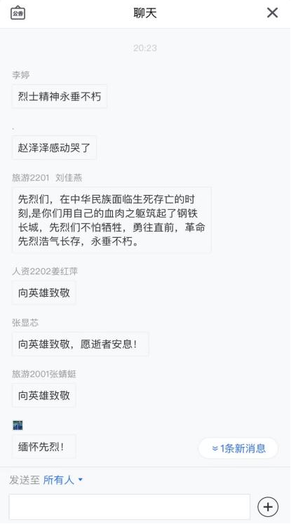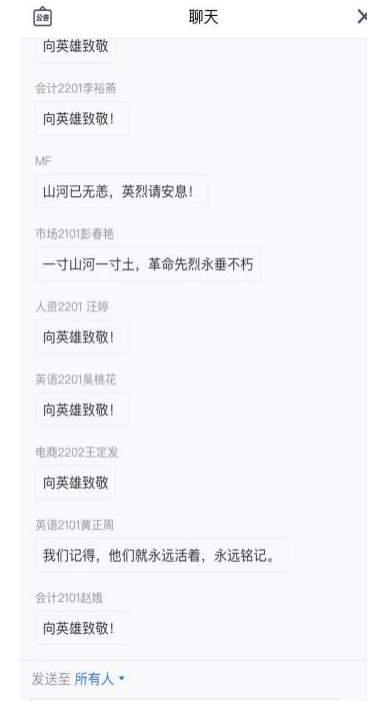 网上祭扫活动完成后,我们进入到第二环节——线上观影谈感受。我系组织同学们观看了“黔军”在抗日战场上的英勇表现,当时贵州总人口不过1000万,贵州黔军参加抗战的兵源就有70余万人,他们在战场上勇猛果敢,谱写了光辉而悲壮的历史篇章。同学们看了视频后有感而发,积极分享了自己的观后感: