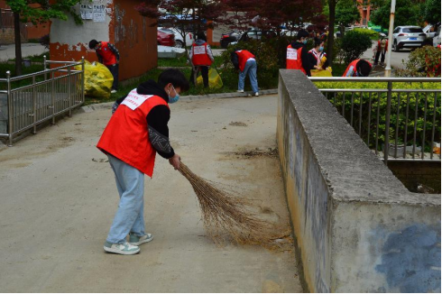 在志愿者服务过程中,成员们有的清理草丛垃圾,有的拿着扫帚清扫大街,有的提垃圾袋捡拾大块垃圾,改善社区环境卫生;除此以外,他们也提醒居民不能忽略疫情防范,现在虽不是紧张时刻,但也不能大意,要注意平时勤洗手,出门戴口罩等。