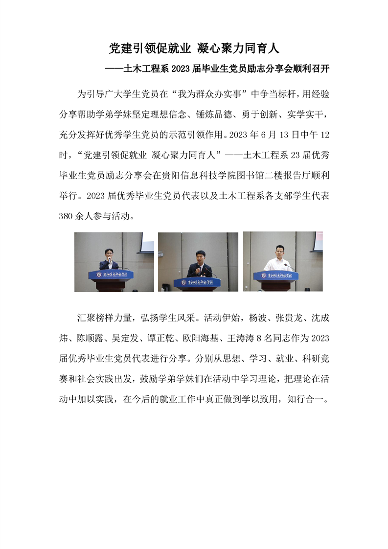 党建引领促就业 凝心聚力同育人——土木工程系2023届毕业生党员励志分享会顺利召开