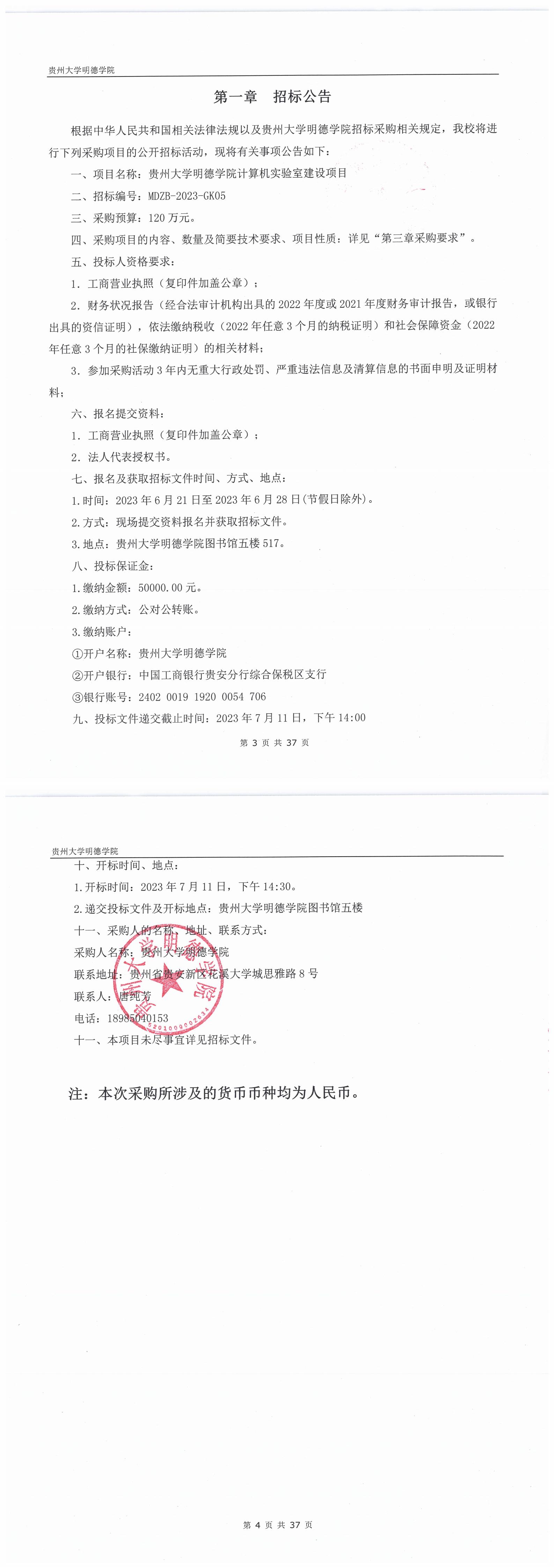 贵州大学明德学院旅游综合实训室建设项目废标公告