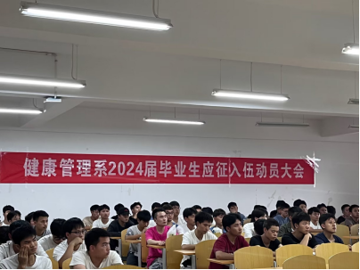 (供稿/王显宇 供图/宣传部)作为新时代青年,大学生承担着建设祖国未来的重任,更肩负着保家卫国的神圣使命,将报国之志,化为报国之行。健康管理系于2023年6月16日下午在F406举办了2024届毕业生应征入伍动员大会。