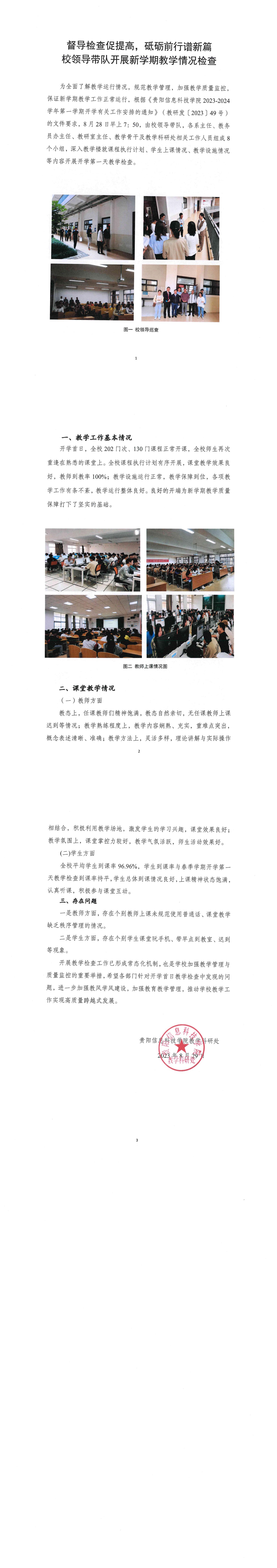 督导检查促提高,砥砺前行谱新篇 校领导带队开展新学期教学情况检查
