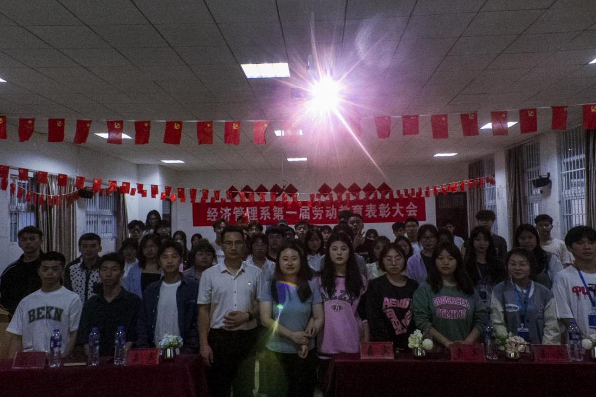 新闻网讯(团总支/余鑫 文字/张绍侠 图片/张绍侠)为推广劳动教育理念,引导广大学生积极参与劳动教育,共同营造美好的校园生活环境,2023年6月15日晚19点,经济管理系首届劳动教育表彰大会在B508隆重举行。本次活动由系学工办助理常倩、吴小路主持,参会人员有经济管理系学工办主任莫建活老师,团总支书记余鑫老师及学生代表,共150余人。