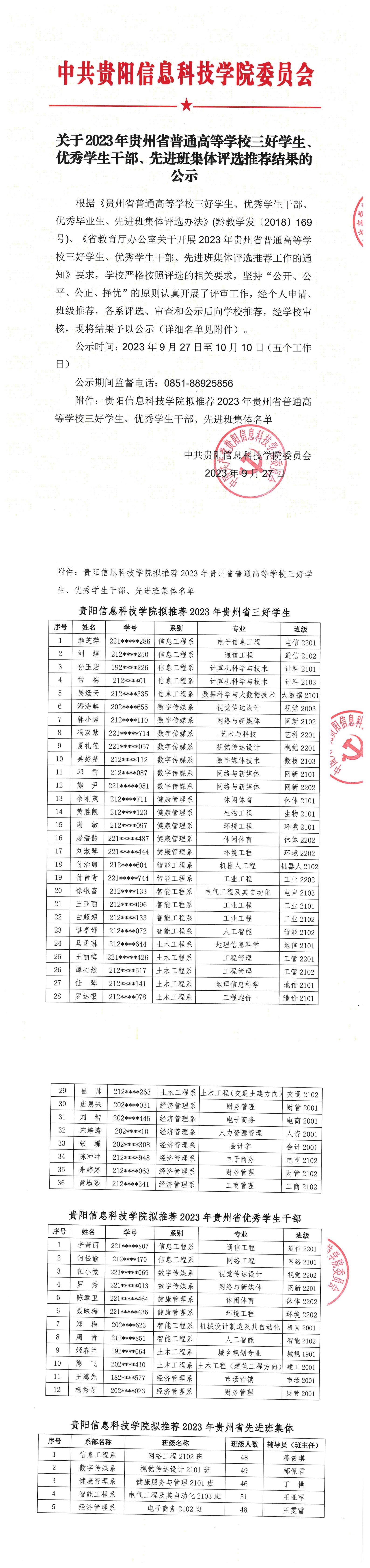 关于2023年贵州省普通高等学校三好学生优秀学生千部、先进班集体评选推荐结果的公示
