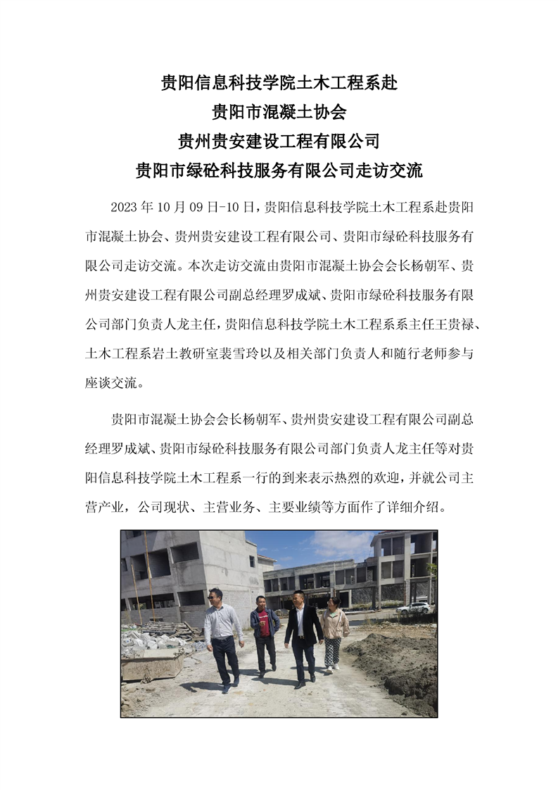 Beat365唯一官方网站土木工程系赴贵阳市混凝土协会&贵州贵安建设工程有限公司&贵阳市绿砼科技服务有限公司走访交流