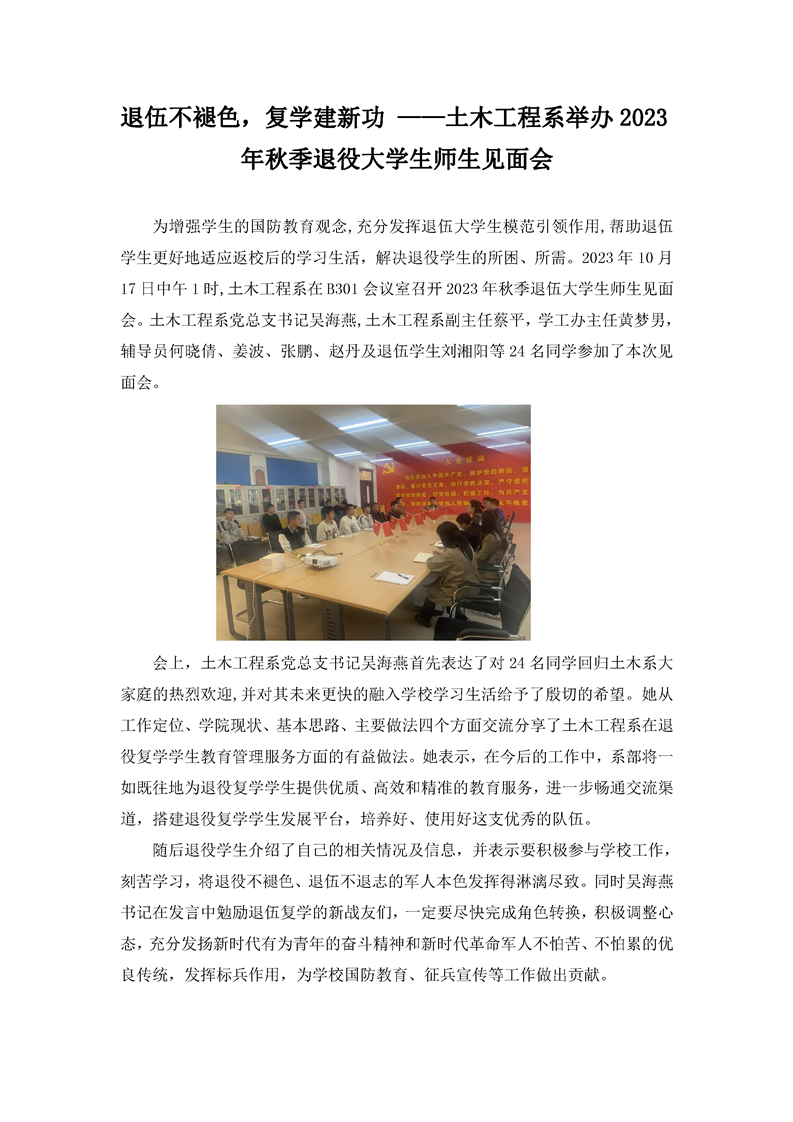——土木工程系举办2023年秋季退役大学生师生见面会