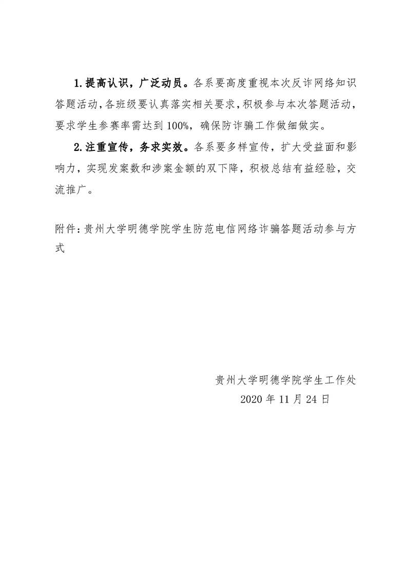关于开展贵州大学明德学院学生防范电信网络诈骗答题活动的通知