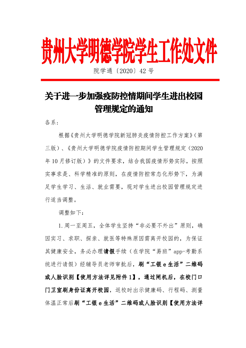 关于进一步加强疫情防控期间学生进出校园管理规定的通知