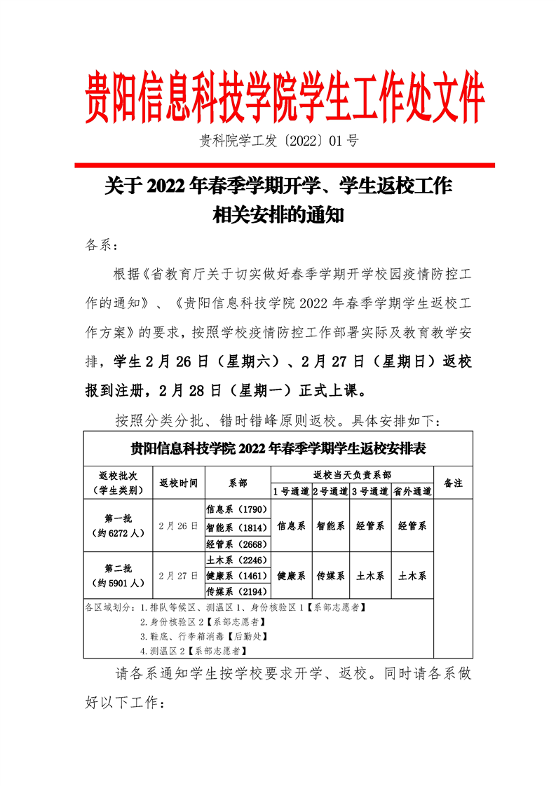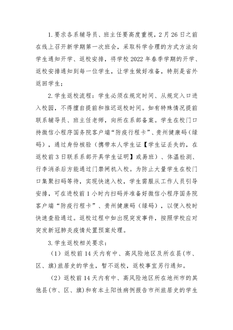 关于2022年春季学期开学、学生返校工作 相关安排的通知