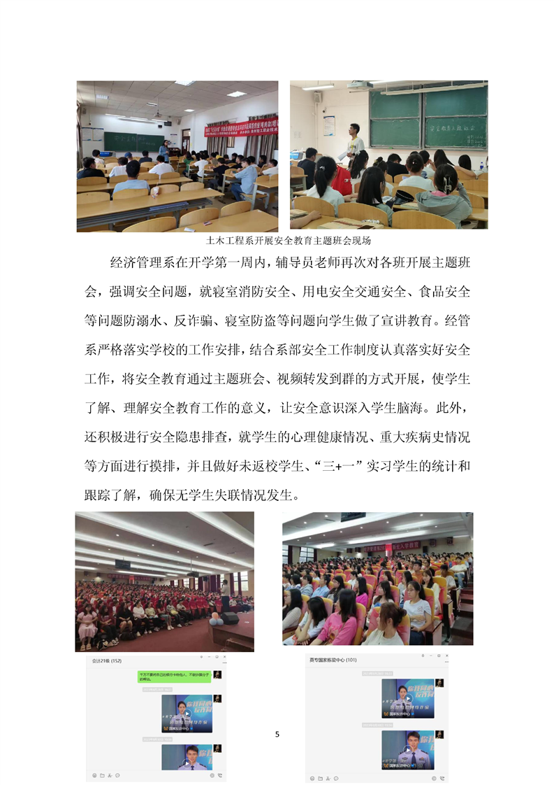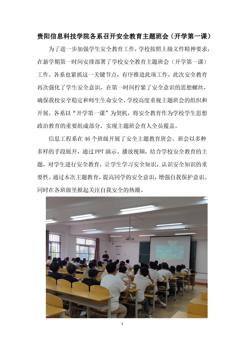 Beat365唯一官方网站各系召开安全教育主题班会(开学第一课)