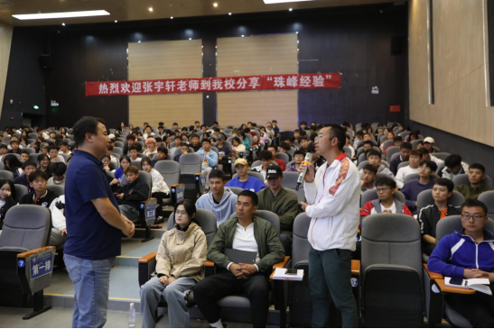 讲座中,张宇轩老师讲述了自己如何坚定地怀揣着“登山梦”,并在每一次尝试中不断挑战极限,从而登顶珠峰的精彩故事。