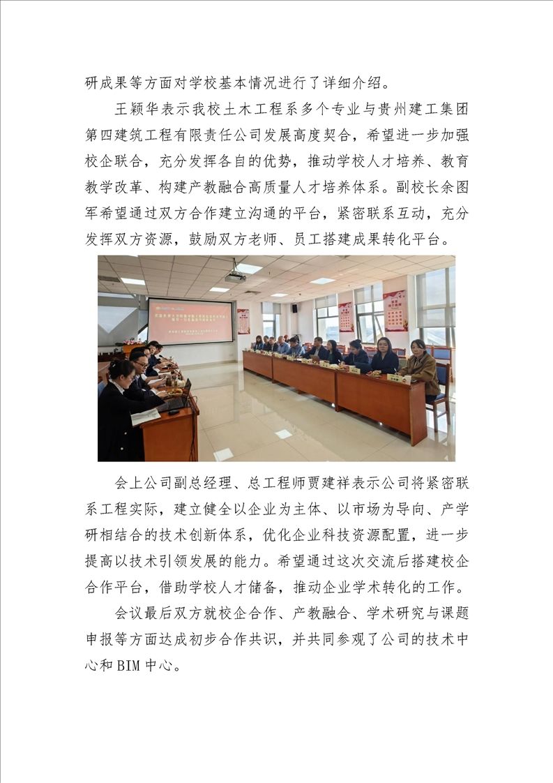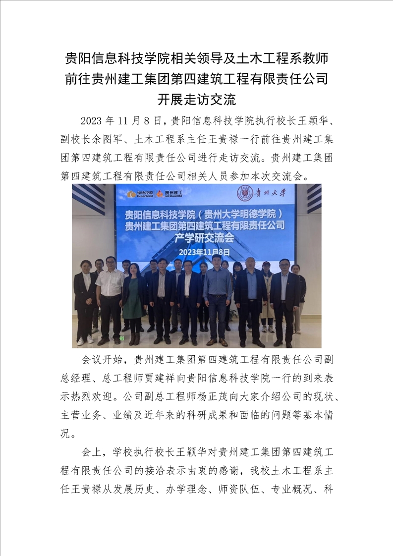 Beat365唯一官方网站相关领导及土木工程系教师前往贵州建工集团第四建筑工程有限责任公司开展走访交流