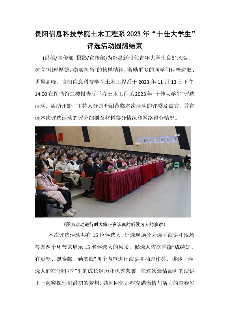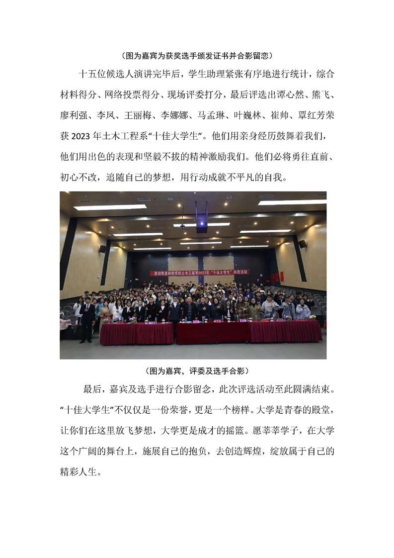 Beat365唯一官方网站土木工程系2023年“十佳大学生”评选活动圆满结束