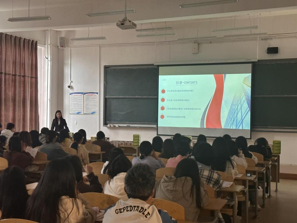 讲座中,李雪老师从一下四个方面展开讲解:一、什么是网络电信诈骗;二、什么是《反电信诈骗法》;三、《反电信诈骗法》如何影响我们的生活;四、如何预防电信网络诈骗。列举十大类型高发电信诈骗案例,全方位教育学生如何避免电信诈骗。李雪老师结合实际案例,系统归纳犯罪分子常用的诈骗方式和手段,细致分析受害者上当受骗的原因,并详细讲解各种防范对策及被骗后的补救措施,教育同学们在生活中做到不轻信、不转账、不上当,遇到类似诈骗要及时报警,保护自己的财产安全。同时还向同学们介绍了国家反诈中心APP和反诈微信小程序,并说明其防诈骗功能的原理和实现方式,帮助大家进一步“擦亮双眼”,切实提升防诈骗能力,做到牢记一个“立足点”,牢记八个“凡事”,用好七大反诈利器!