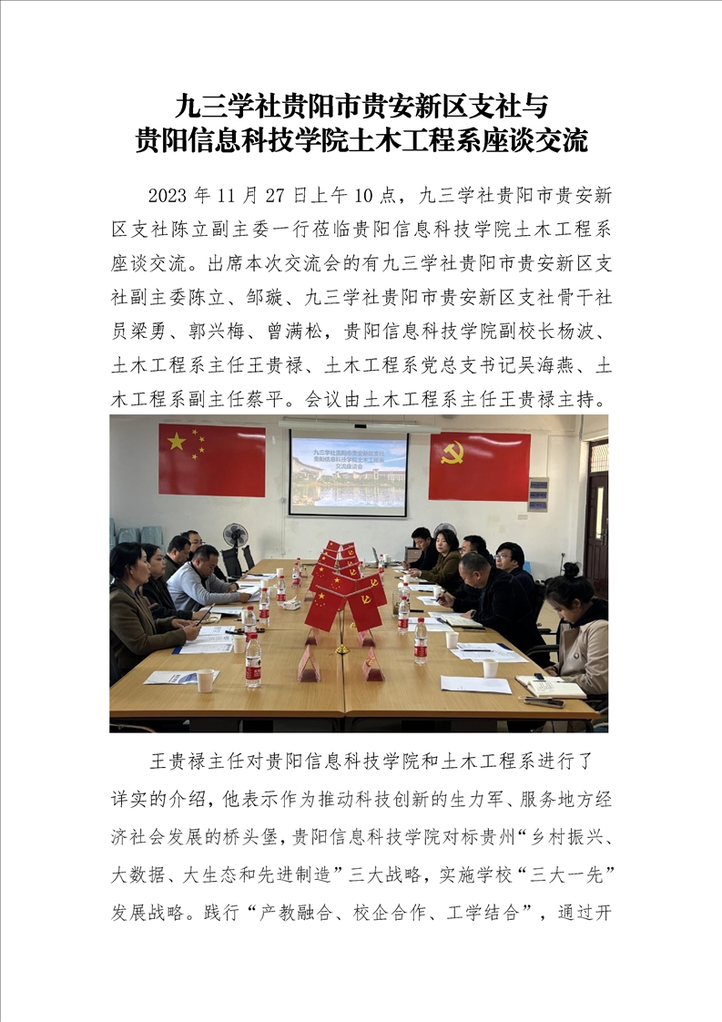 九三学社贵阳市贵安新区支社与Beat365唯一官方网站土木工程系座谈交流