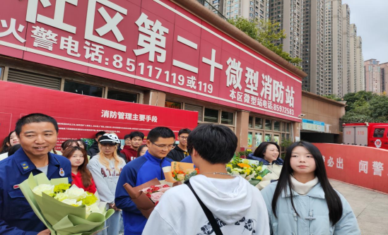 最后,两系学生为消防员们送上鲜花表达谢意并合影留恋。通过本次消防站参观学习,不仅提升了同学们对消防安全工作的认识,还使他们深刻领悟到火灾救援抢险工作的重要性和严谨性。此外,同学们直观全面地了解了消防抢险救援的内容,进一步营造了“关注消防,重视消防”的良好氛围,为构建平安防火墙打下了坚实的基础。