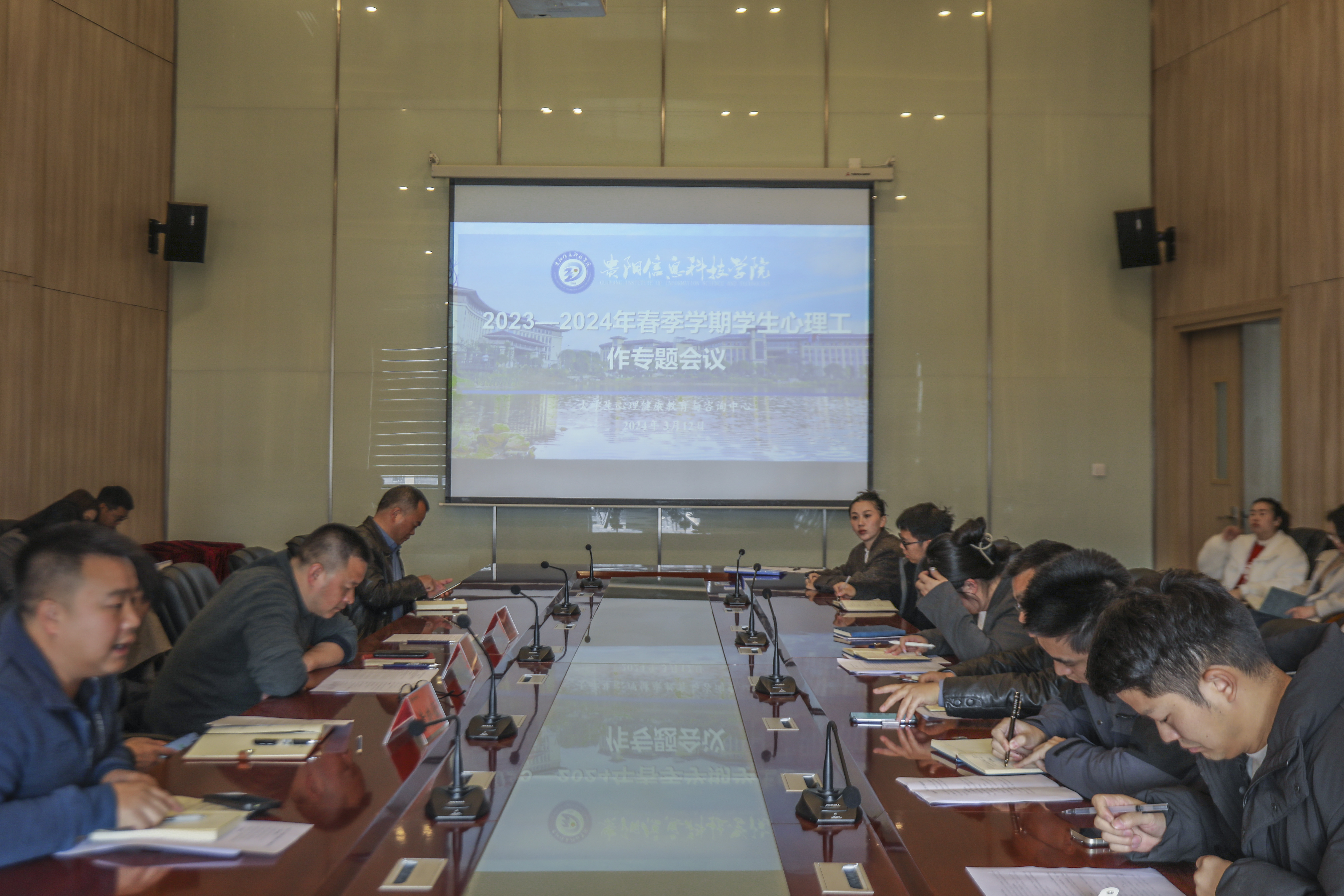 新闻网讯(供稿 心理中心 供图 党群工作部)3月12日上午,Beat365在图书馆五楼第一会议室召开2023-2024学年春季学期学生心理工作会议,党委书记饶斌华,党委委员、纪委书记黄晓儒,各职能部门负责人、党总支书记及全体专职辅导员参加会议。