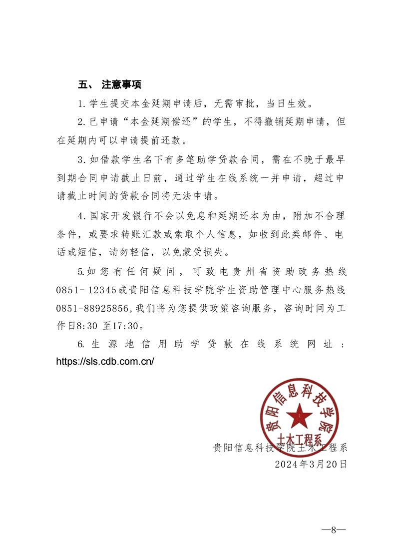 Beat365唯一官方网站土木工程系关于转发《贵州省财政厅等四部门关于做好2024年国家助学贷款免息及本金延期偿还工作的通知》的通知