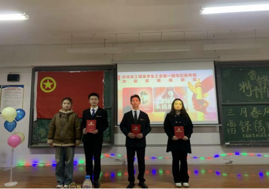 2024年3月15日,信息工程系团总支在B209教室举行以“三月春风处处暖,雷锋精神代代传”为主题的团组织生活评比活动,出席本次活动的有各系团总支学生会负责人及本系学生观众共计280余人。