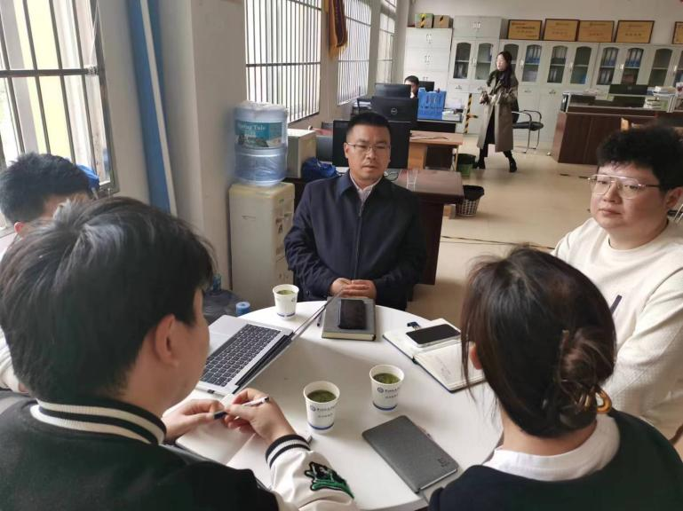 (图为经济管理学院党总支书记朱成龙(中)和郭东越老师(右)在与企业相关负责人交流)