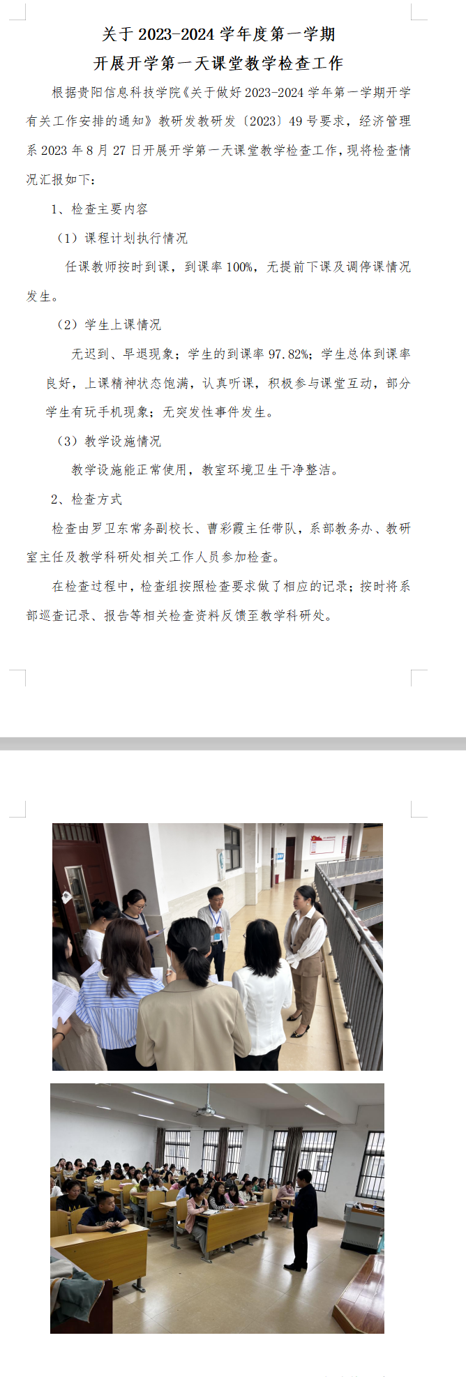 (经济管理系)开展开学第一天课堂教学检查工作