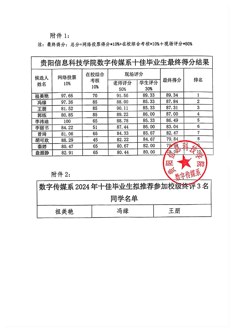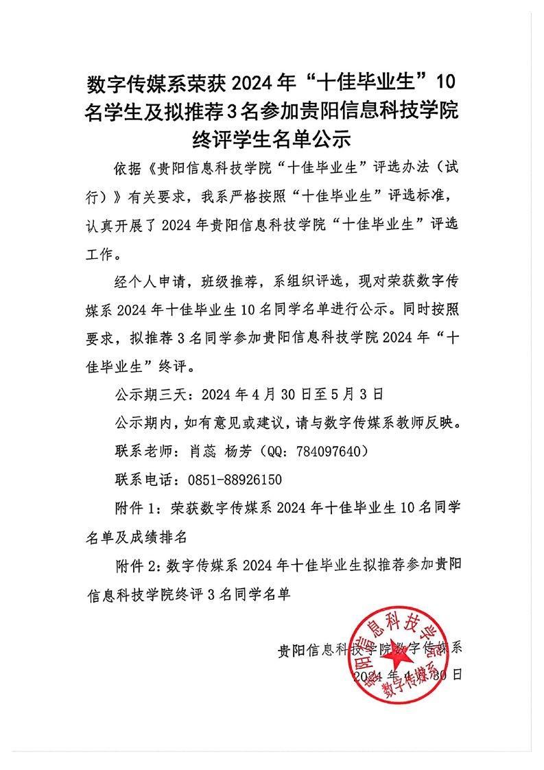 数字传媒学院2024年十佳毕业生名单公示