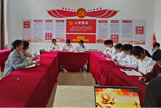 会议开始,由湛姗同志带领全体同志奏《唱国际歌》,并宣读了此次新接收的预备党员名单。随后,由湛姗同志带领全体同志右手握拳,面向党旗庄严宣誓。