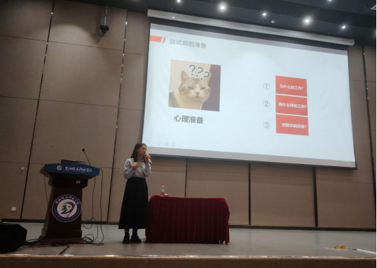 讲座中,周老师深入浅出地讲解了如何制作一份面试官喜欢的简历、求职者在面试前需要做什么样准备、面试过程中的仪态以及面试结束后的告别礼仪等四个方面展开了讲解。