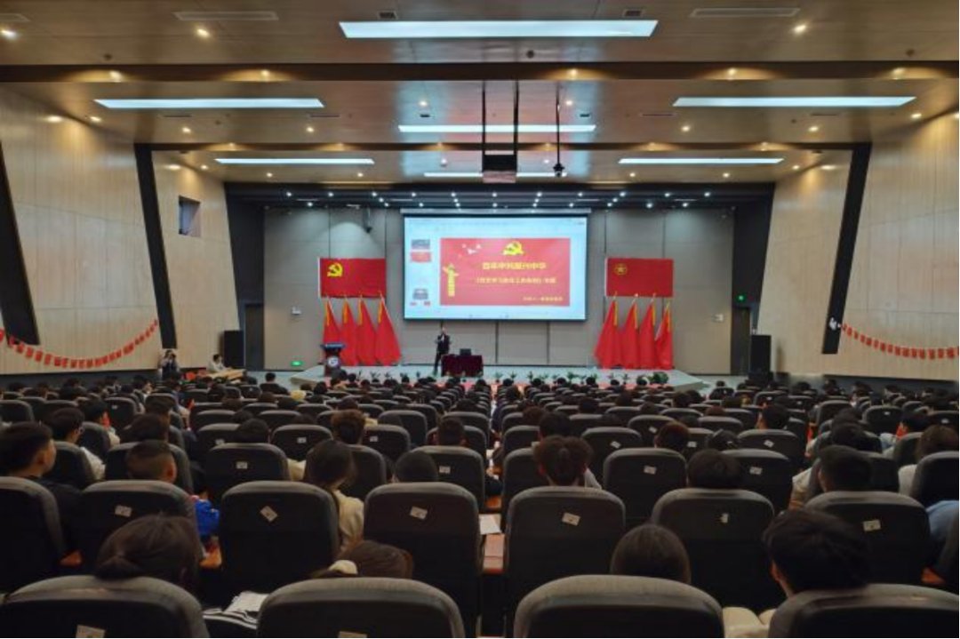 唐建荣教授从建党的开天辟地,到新中国成立的改天换地,再到改革开放的翻天覆地,意气风发进入新时代的惊天动地,深入浅出地阐述了党的百年辉煌历史,深刻揭示了中国共产党为什么“能”、马克思主义为什么“行”、中国特色社会主义为什么“好”等重大问题。同时,唐建荣教授指出:“作为新时代的贵科学子,要进一步围绕‘六个功夫’做实事,要在坚定理想信念上下功夫、在厚植爱国主义情怀上下功夫、在加强品德修养上下功夫、在增长知识见识上下功夫、在培养奋斗精神上下功夫、在增强综合素质上下功夫。”