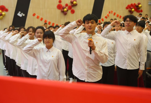 会上为新团员举行了庄重的入团仪式。140名新团员面对鲜艳团旗,举起右手庄严宣誓:“我志愿加入中国共产主义青年团,坚决拥护中国共产党的领导,遵守团的章程……为共产主义而奋斗。”青春誓言、高昂雄浑,表达了同学们对加入共青团组织的激情与自豪。机自2302班宋宏成同学作为新团员代表发言,他表示:“作为一名新团员,我深知自己的责任和使命,在今后的工作和学习中,我将始终保持对团组织的热爱和忠诚,始终保持为人民服务的初心和使命,始终保持团结协作、共同奋斗的精神状态,在担当中历练、在尽责中成长、在奋斗中绽放!