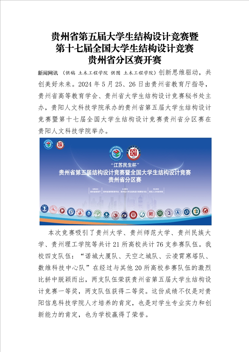 贵州省第五届大学生结构设计竞赛暨第十七届全国大学生结构设计竞赛贵州省分区赛开赛
