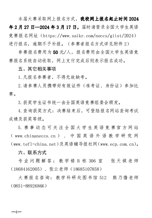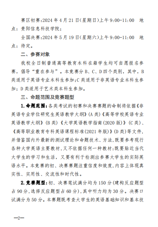 Beat365唯一官方网站关于 2024 年全国大学生英语竞赛比赛安排的通知