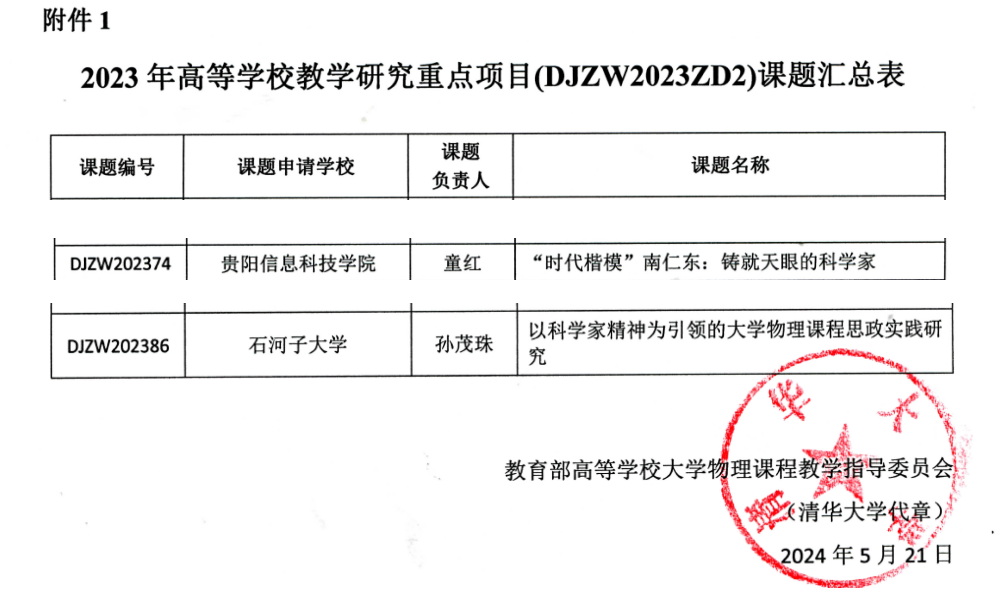 Beat365童红教授领衔的《“时代楷模”南仁东:铸就天眼的科学家》课题成功获得立项支持。童红教授团队将深入研究南仁东先生这一科学巨匠的生平事迹与科学精神,探索如何将这种精神融入大学物理课程的教学中,以榜样的力量激励广大学子追求卓越、勇于创新。