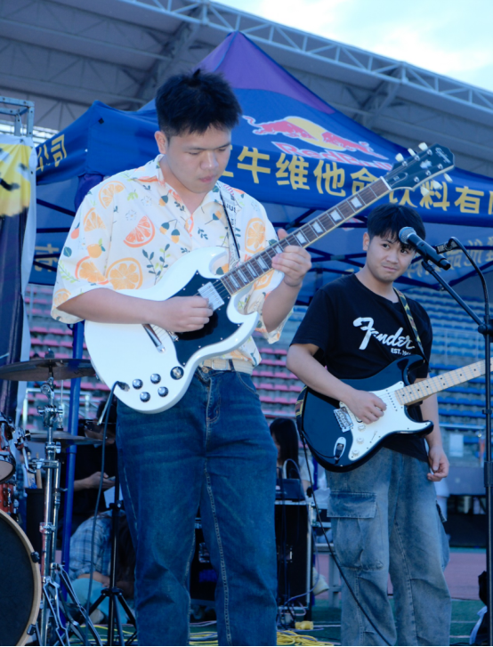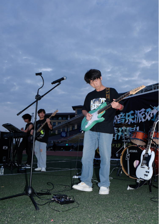 随着夜幕降临,一号足球场逐渐热闹起来。17:00-18:30,技术人员对音响、灯光等设施进行了最后的调试,确保一切运作正常。音乐会准时拉开帷幕,两支学生乐队—默聲時代和零度乐队轮番上阵,带来了激情四射的现场表演。他们的演出不仅展示了非凡的音乐才能,也传递了青春的活力与热情。